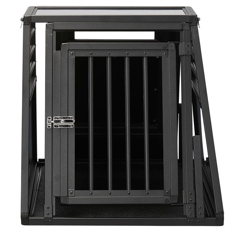 Et pladsbesparende design udviklet til perfekt udnyttelse af bagagerummet. Det ekstra kraftige flot designet hundebur står godt og sikkert i bilens bagagerum og oser af kvalitet og luksus. Har nødudgang, aluminiumstremmer, stærke alu-komposit sider, smudsmåtte oma.