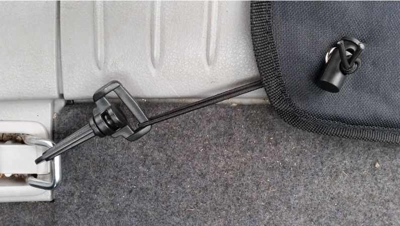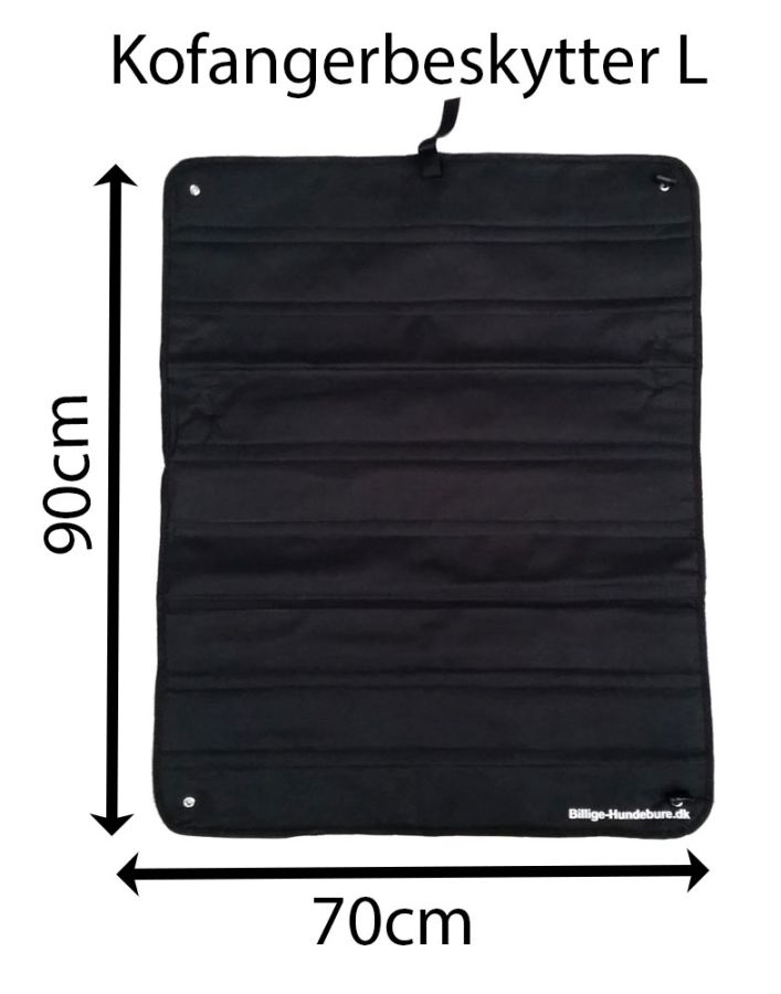 Praktisk beskyttelsesmåtte som beskytter din kofanger når hunden skal ind og ud af bilen. Måtten kan vendes på både den brede og smalle led og monteres supernemt ved hjælp af elastikstropper med kroge. Når den ikke bruges, kan den rulles sammen og lukkes med velcro så den ikke fylder. Måtten måler 70 x 90 cm.