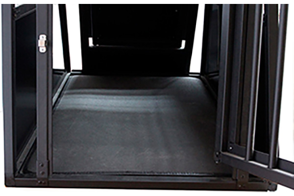 Elite buret er udstyret med en lækker skridsikker smudsmåtte i bunden af buret. Måtten er syet på mål, så den passer perfekt ind i buret. Måtten er med af flere årsager. Dels så kan hunde godt føle sig utrygge ved glatte underlag. Den utryghed fjernes vha. den skridsikre måtte. Herudover fungerer bundmåtten som smudsmåtte. Den er nem at tage ud og skylle når der er behov for det. Fx efter en våd regnsvejrsdag, eller efter en tur i skoven? At bundmåtten er skridsikker betyder også at du nemt kan ligge et tæppe i bunden af buret uden du risikerer at tæppet krøller sig sammen i det ene hjørne.