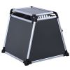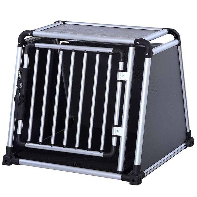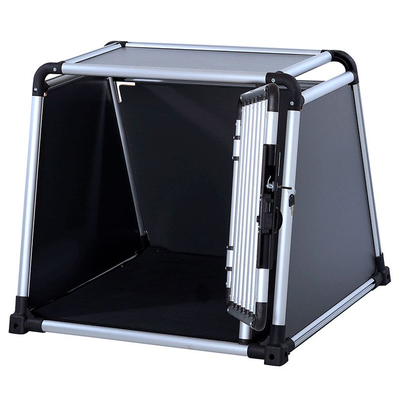 Tremmerne er lavet af kraftige aluminiumsprofiler, der er både stærke og holdbare. Siderne har en høj massefylde – dvs, tætheden i træfiberpladerne er høj. Det giver kraftigere / stærkere sider, selvom de ikke er tykkere. Bundpladen er i aluminiumskomposit, for at opnå en højere brudstyrke ifht, træ, for at sikre at det er stærkt nok til at bære vægten fra hunden.