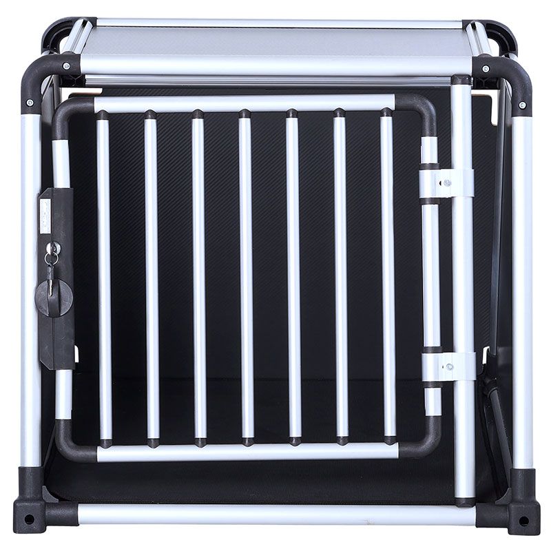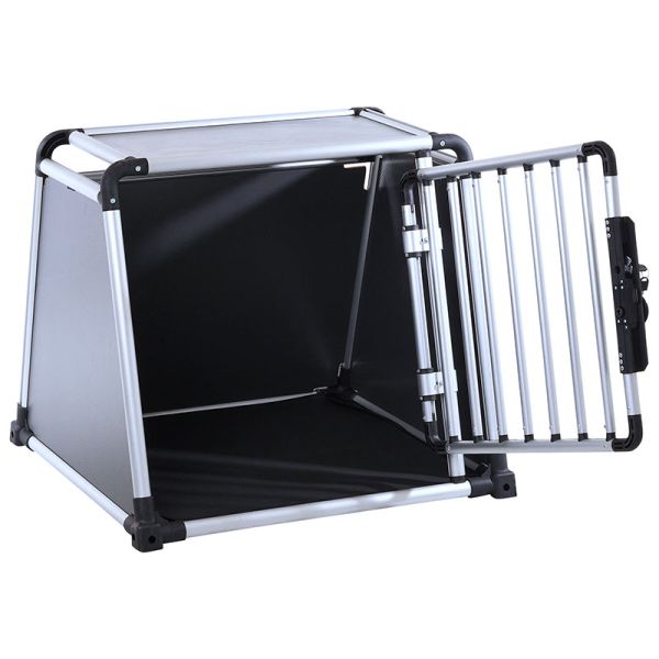 Dette sikre Elite hundebur har forstærket sider og enormt tykke aluminiumsprofiler. En nem drejelås der kan betjenes med 1 hånd som samtidig kan låses med nøgle.