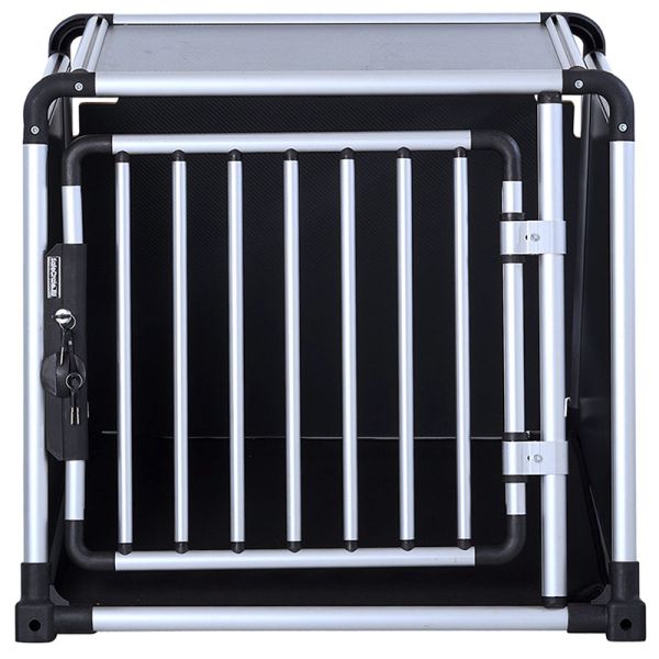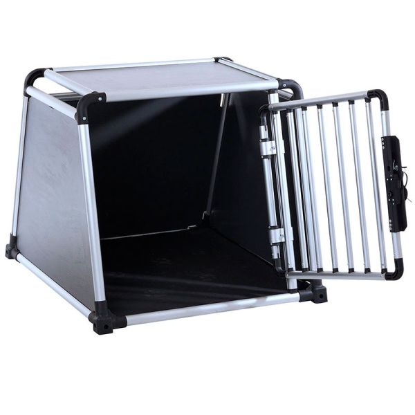 Dette sikre Elite hundebur har forstærket sider og enormt tykke aluminiumsprofiler. En nem drejelås der kan betjenes med 1 hånd som samtidig kan låses med nøgle.