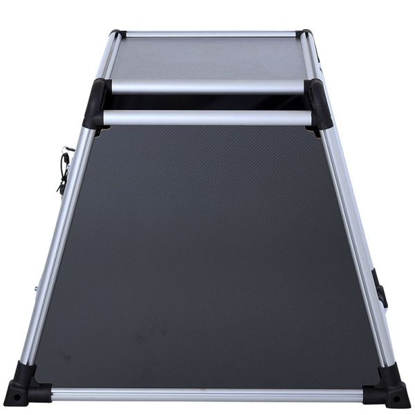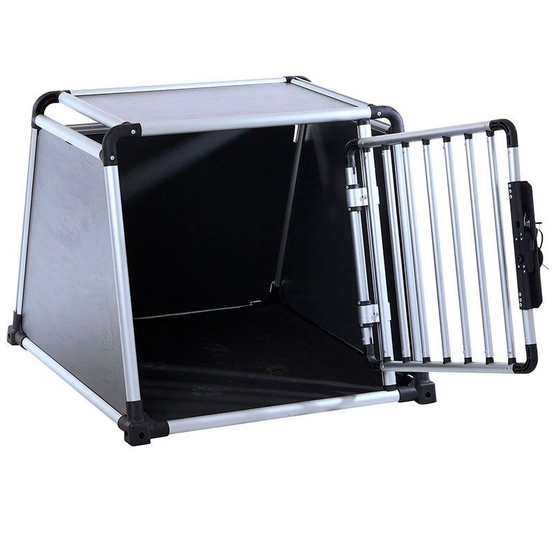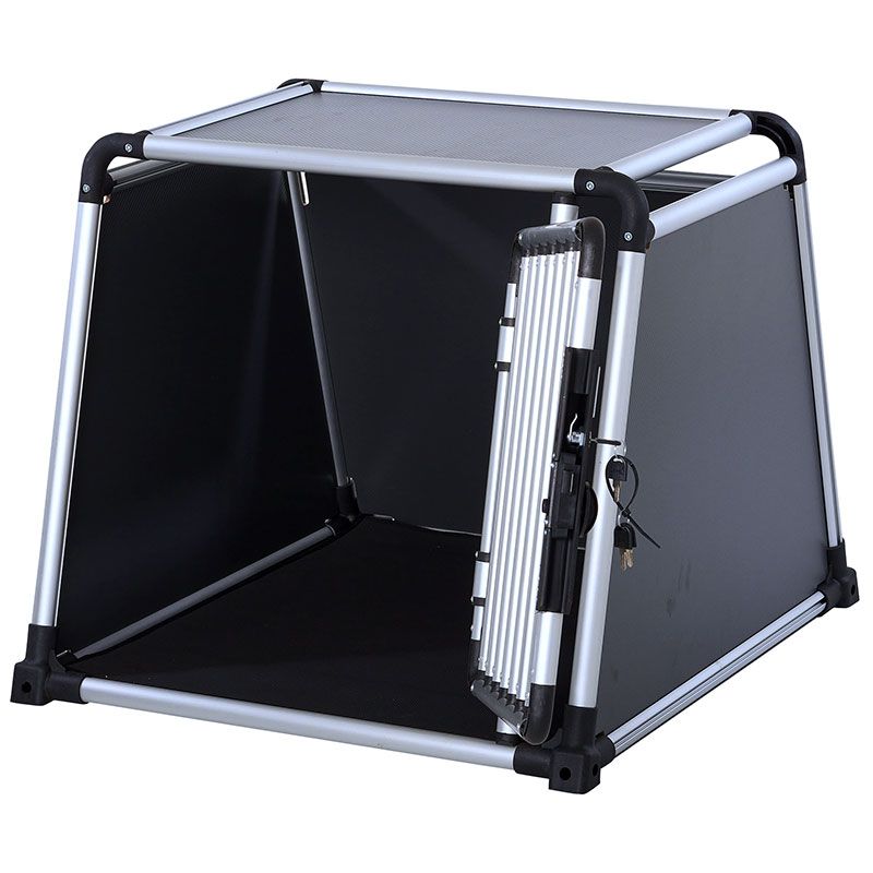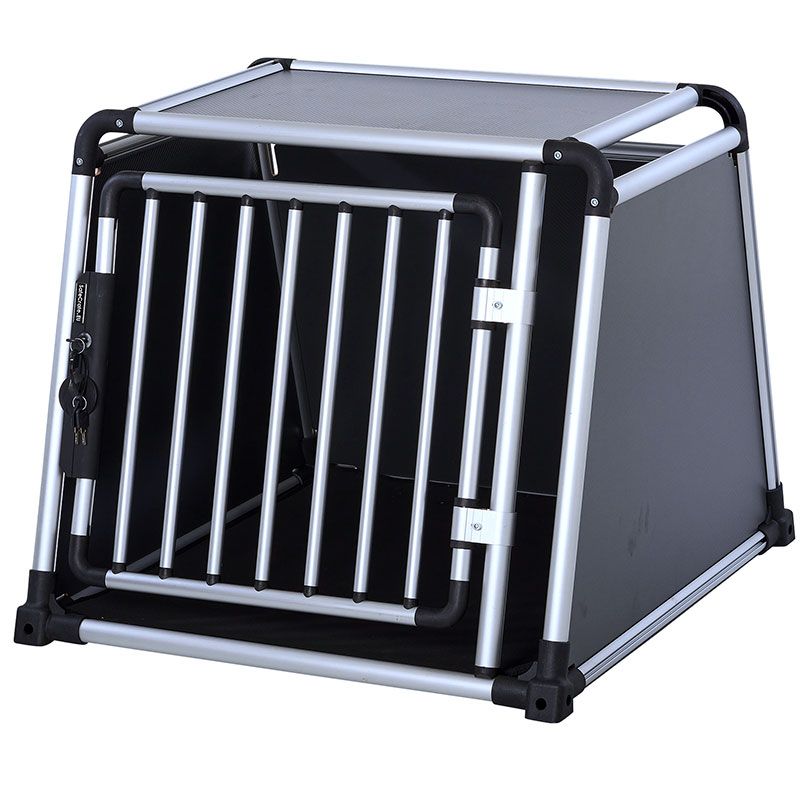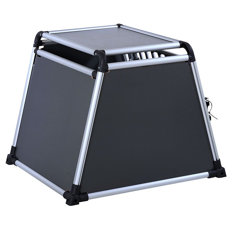 Tremmerne er lavet af kraftige aluminiumsprofiler, der er både stærke og holdbare. Siderne har en høj massefylde – dvs, tætheden i træfiberpladerne er høj. Det giver kraftigere / stærkere sider, selvom de ikke er tykkere. Bundpladen er i aluminiumskomposit, for at opnå en højere brudstyrke ifht, træ, for at sikre at det er stærkt nok til at bære vægten fra hunden.